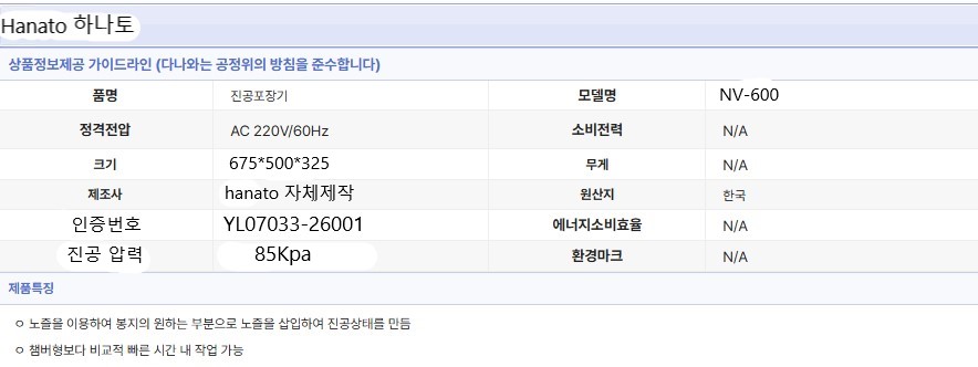 ³ëÁñ½Ä Áø°øÆ÷Àå±â NV-600