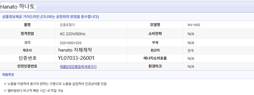 ³ëÁñ½Ä Áø°øÆ÷Àå±â NV-450